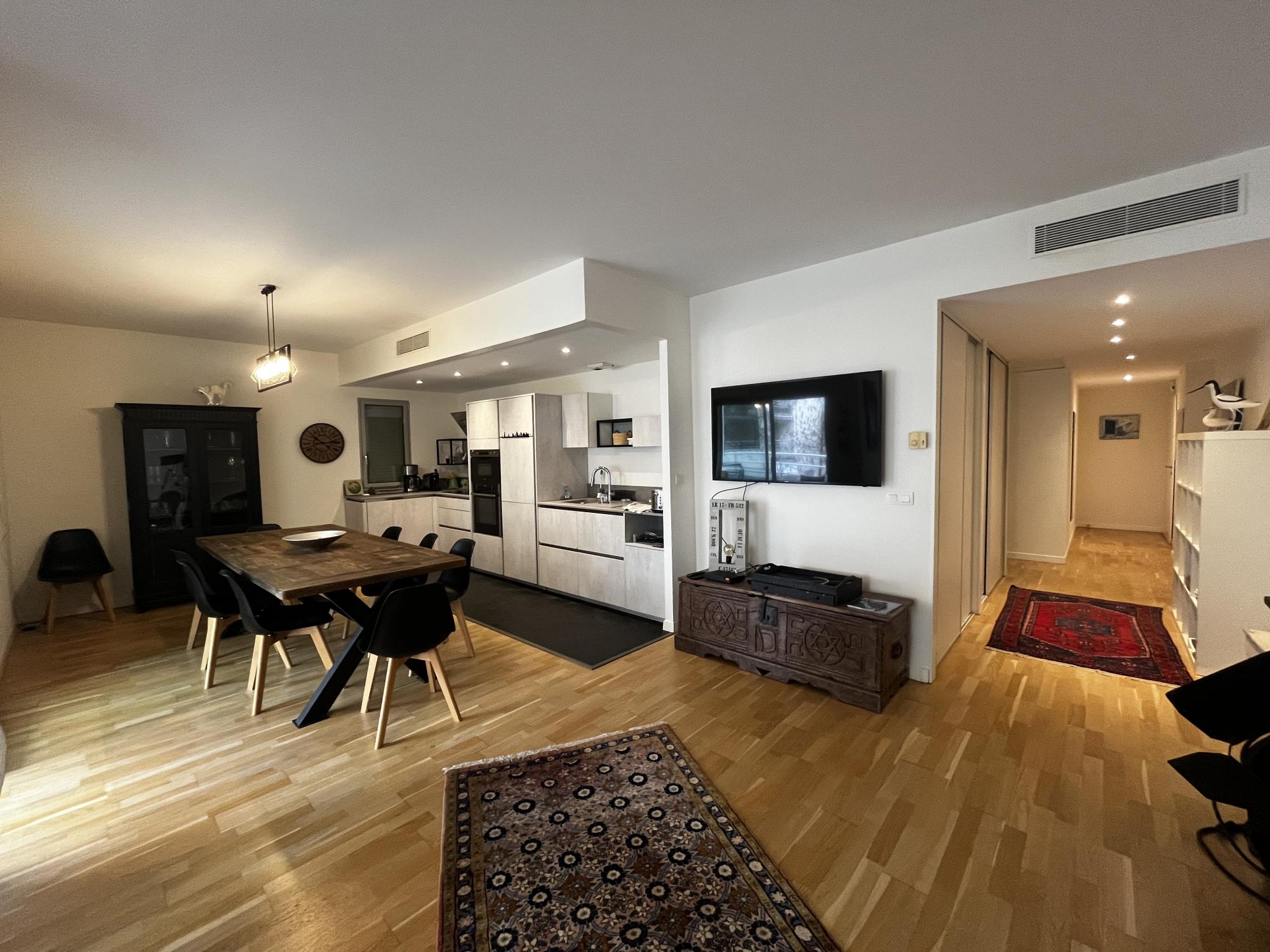 Situé au cœur du quartier de la ville en bois, à deux pas du centre-ville de La Rochelle, au 1er étage d’une résidence sécurisée, avec ascenseur, venez découvrir ce superbe T4 meublé d’environ 100 m² idéal pour de la colocation ou grande famille se composant de :